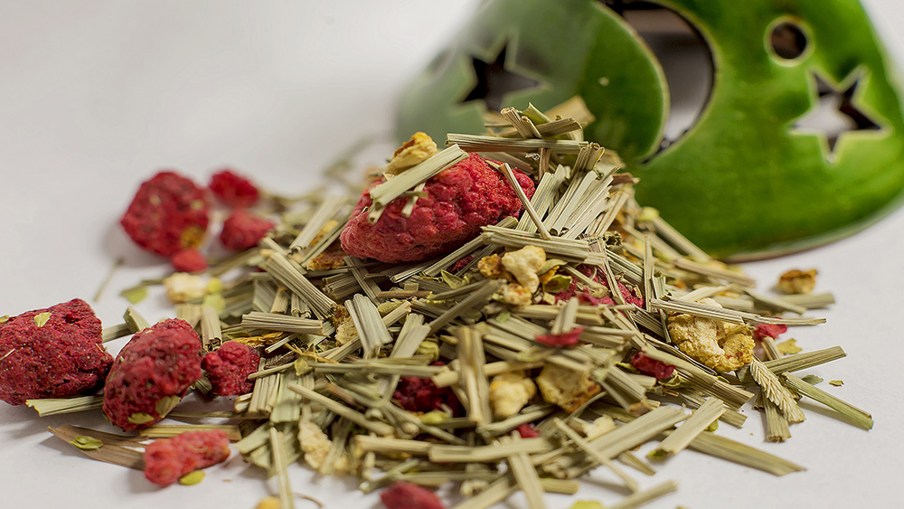 Sudedamosios dalys: citrinžolė, raudonėliai, liofilizuotos avietės, apelsinų žievelės, čiobreliai.