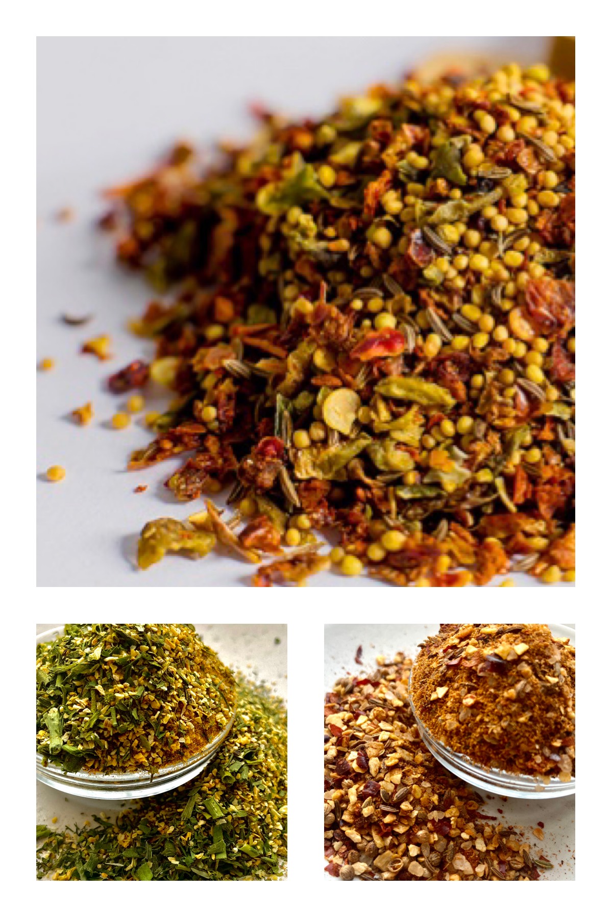 jūros druska, česnakai, krapų sėklos, aitrioji paprika, kmynai, ožragė, kalendra, medetkos, paprikos ekstraktas.