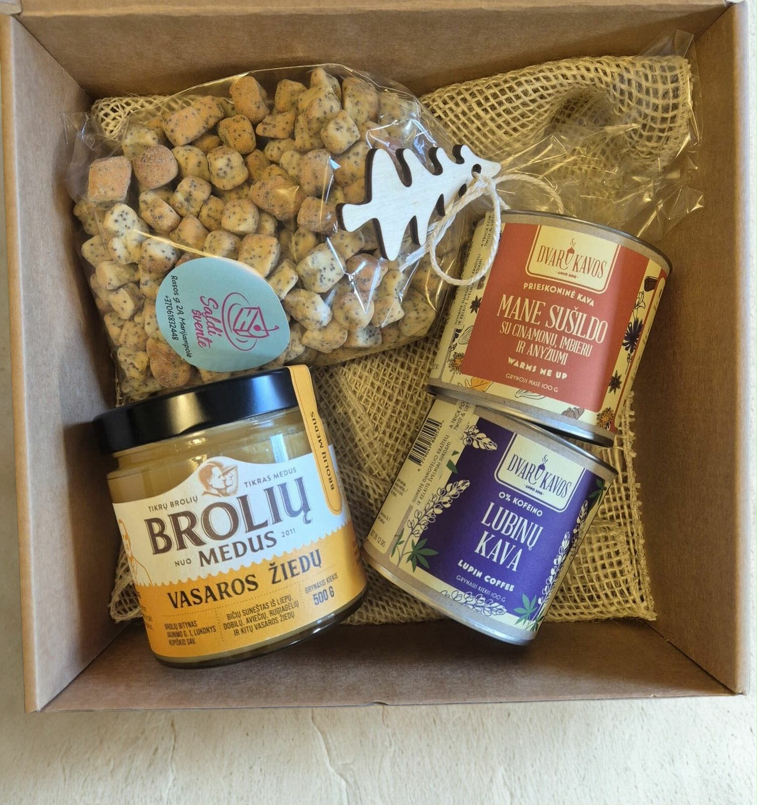 Jums paruošta rinkinyje “Kūčiukas” Naminiai kūčiukai-250g-1vnt Vasaros medus-1vnt Lubinų kava-1vnt Prieskoninė kava Mane sušildo-1vnt Pasimėgaukime tradiciniais ir naujais skoniais 🙂