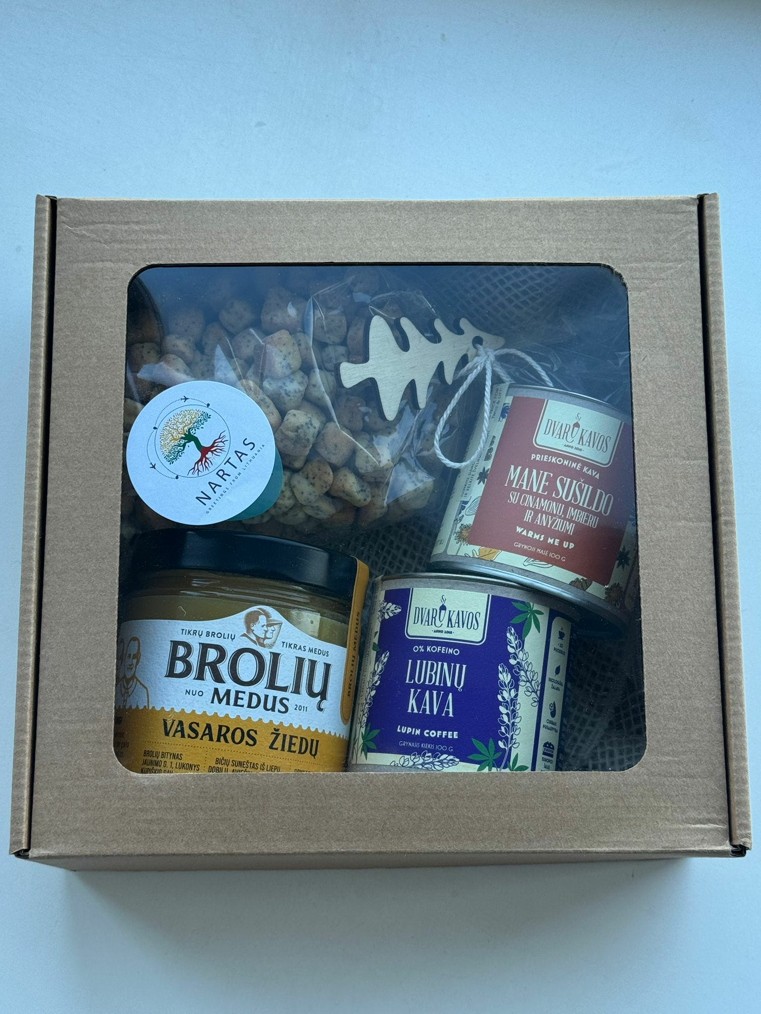 Jums paruošta rinkinyje “Kūčiukas” Naminiai kūčiukai-200g-1vnt Vasaros medus-1vnt Lubinų kava-1vnt Prieskoninė kava Mane sušildo-1vnt Pasimėgaukime tradiciniais ir naujais skoniais 🙂